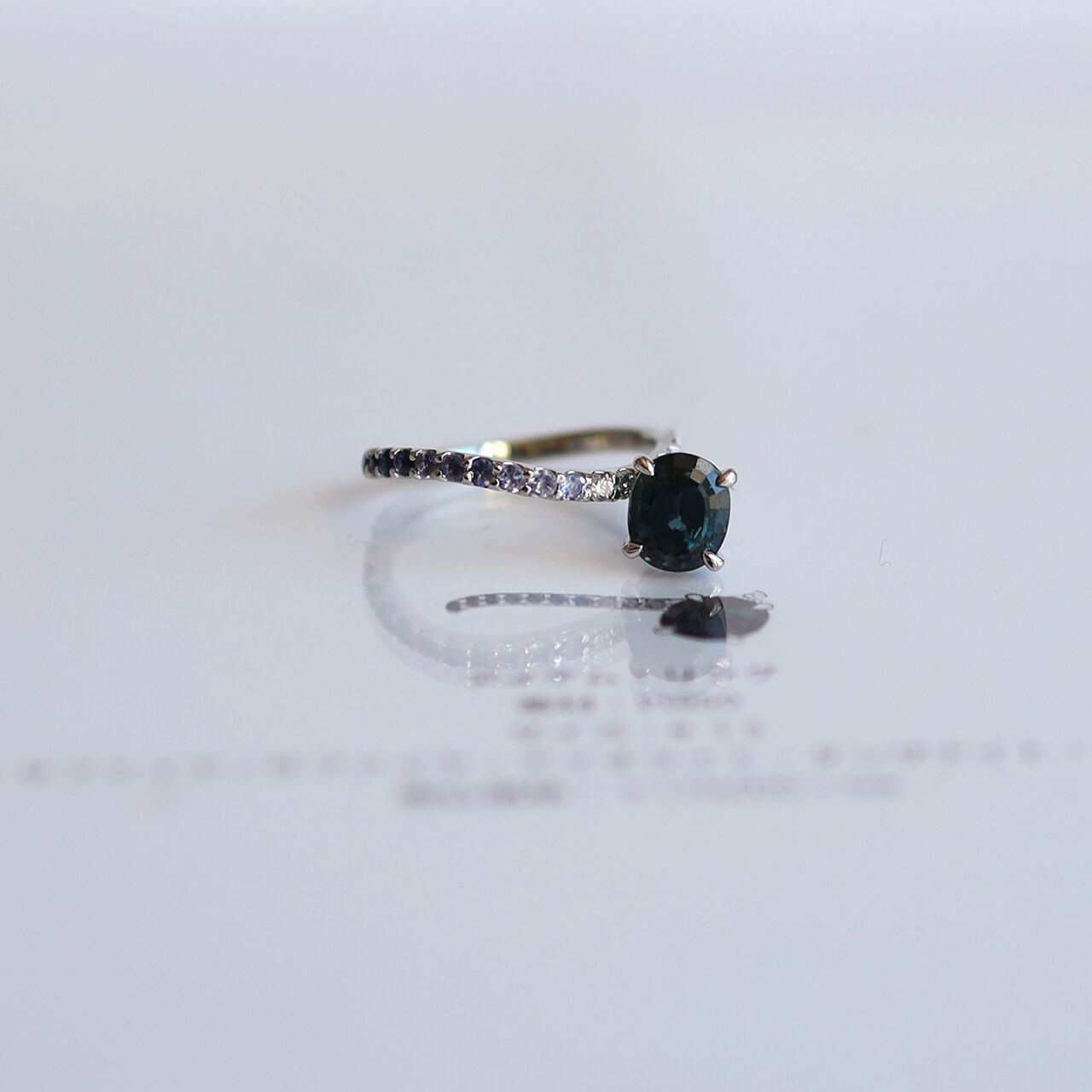 【価格には消費税が含まれています】 お持ち頂きましたジュエリーの石でをお仕立て致しました。 [アイテム]リング [型 番] Fu-Ha-1 [素 材]Pt950 サファイヤ/ サファイヤ・アイオライト・タンザナイト・ダイヤモンド